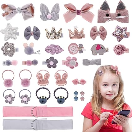 Melliex 36 Piezas Horquillas Pelo Nina Set De Pinza De Pelo Lazos Multicolor Clips De Pelo Y Gomas De Pelo De Bebe Accesorios Para El Cabello Rosado Gris Amazon Es Belleza
