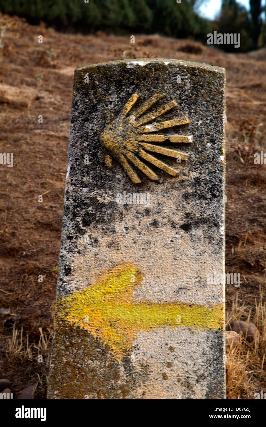La Flecha Amarilla Y Concha Signos Que Marcan El Camino A Santiago De Compostela De Proporcionar Orientacion A Los Peregrinos Fotografia De Stock Alamy