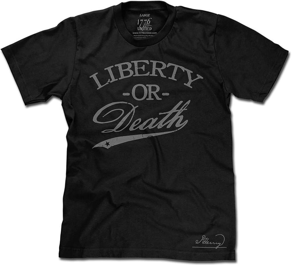 Liberty or Death graphic tees by Liberty Maniacs A classic tee that has a light feel Made of 100% ringspun cotton, these tees have a modern cut on soft, 30 singles ringspun cotton 100% ringspun lightweight cotton Preshrunk Shouldertoshoulder tape Seamless collar Doubleneedle sleeve and bottom hem Fabric weight. Don't Tread One Me Liberty Or Death Tshirt (O) SALE $2995 $1495 Style Mens Regular Fit Shirt Womens Regular Color. Liberty or Death Flag TShirt Regular price $2999 SM $2999 USD MD $2999 USD LG $2999 USD XL $2999 USD 2XL $2999 USD 3XL $3149 USD.