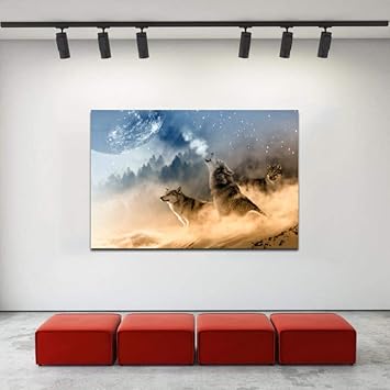 Lcgbw Cuadros Decorativos Modernos Lobo Rugiendo A La Luna Lienzo De Pintura Animal Impreso Para La Sala De Estar Pintura Art Print Lienzo Marco 60x1cm Amazon Es Bricolaje Y Herramientas