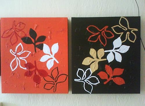 Cuadros Decorativos Modernos Hojas Diptico Pintado A Mano Listo Para Colgar Cuadro Decorativo Para Pared En