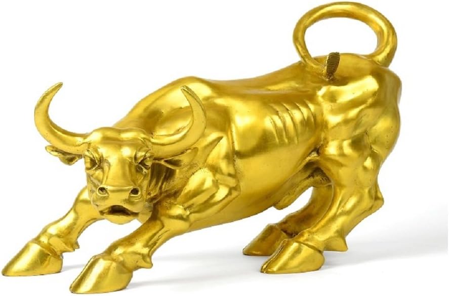 Amazon Com Wall Street Bull Statue Charm Lucky Statues And Sculptures For Stock Market Decor Brass Bulls Figurines Small Home Kitchen