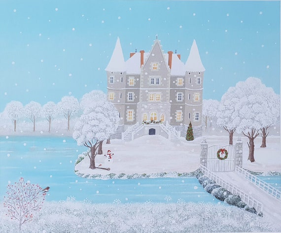 Print Folk Art Winter At Chateau De La Motte Etsy