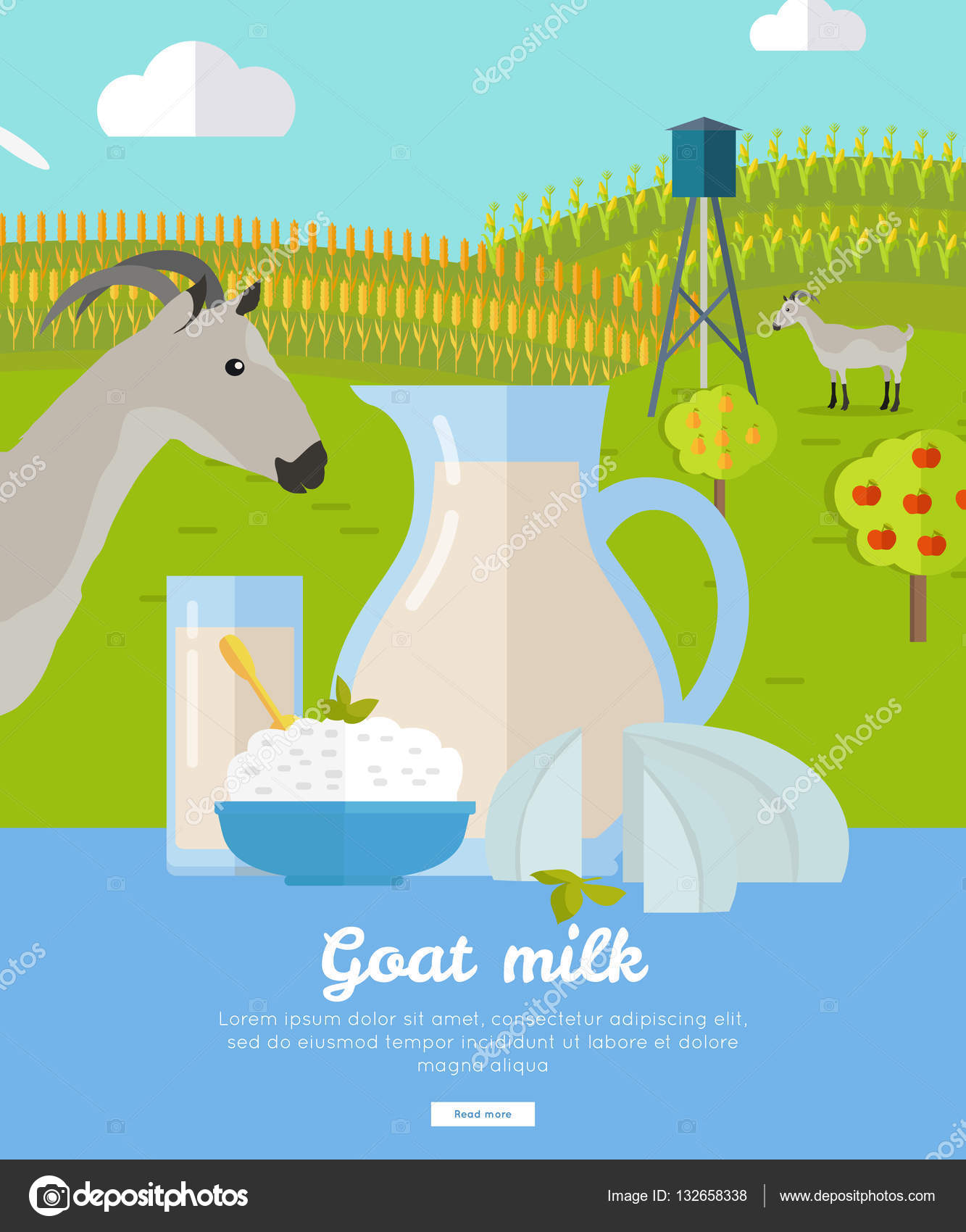 Productos Lacteos De Leche De Cabra Productos Lacteos De Cabra Leche Granja Concepto Banner Vector Vector De Stock C Robuart