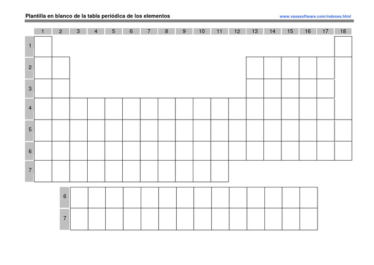 Puedes editar e imprimir la plantilla con la tabla periódica en hoja de cálculo para conocer todos los datos y la información sobre la distribución los elementos químicos, no te quedes con las dudas y repasa con esta plantilla de Excel la tabla periódica sus propiedades y características, así como su símbolo. Capítulo La tabla periódica algo más que un icono de la ciencia Libro completo en https//bitly/2GJnYuW La tabla periódica (TP) es uno de los iconos más relevantes y universales de la. Plantilla en blanco de la tabla periódica de los elementos wwwvaxasoftwarecom 1 2 3 4 5 6 7 8 9 10 11 12 13 14 15 16 17 18 Title Blank Periodic Table Author.