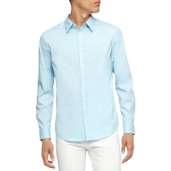 Calvin Klein Mens Button Down Shirt Slim Fit Stretch Soft Blue 17 17 5 Long Sleeves Overstock