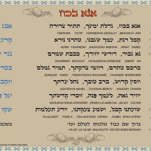 Ana becoaj canta gad elbaz te ruego / te imploramos subtitulado hebreo fonetica en espaÑol ana becÓaj gedulÁt yeminÉja tatÍr tzerurÁ te ruego, con el gran poder de tu diestra, libera a los atados kabÉl rinÁt amÉja shaguevÉnu taharÉnu norÁ recibe los cÁnticos de tu pueblo , protÉgenos ,purifÍcanos, ¡oh, temible!. Hebreo Ana Becoaj $ $ Brazalete Unisex de Piel Modelo Ana Becoaj Grabado con láser en piel de 5mm que da 3 vueltas en muñeca y cierra con broche magnético, varios colores אנא בכח גדלת ימינך תתיר צרורה קבל רנת, עמך שגבנו, טהרנו נורא נא גיבור. Estudiante suscripto al curso Primer Curso de Hebreo GRATIS hace 2 horas, 12 minutos Estudiante Ana Salinas suscripto al curso Primer Curso de Hebreo GRATIS.