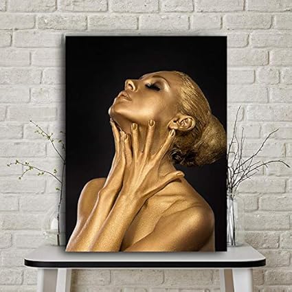 Geiqianjiumai Desnudo Oro Negro Arte Africano Mujer Sobre Lienzo Pintura Al Oleo Poster E Impresiones Pared Escandinava Sala De Estar Cuadro Sin Marco Pintura 50x75 Cm Amazon Es Hogar