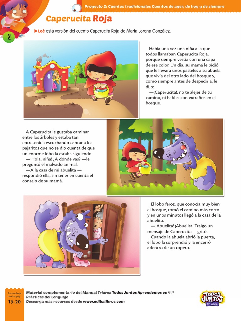 Cuento_caperucita_actividades_comprension_1pdf (4917 kb) cuento_caperucita_actividades_comprension_2pdf (4 kb) fichas_concordancia_genero_numero_caperucitapdf ( kb) fichas_estructura_frases_que_hace_caperucitapdf ( kb) fichas_estructura_frases_repaso_caperucitapdf (132 mb) licencia idiomas tweet. Caperucita Roja January 19, 21 Titulo del libro Caperucita Roja The tomes of My First Library are small jewels that teach to appreciate the good books For the children of today to know the most famous stories of all time, the volumes of this collection are edited in new versions, very carefully, and illustrated by the best contemporary artists. Cuento de Caperucita roja Érase una vez una linda niña, que vivía junto a un espeso bosque Siempre vestía una caperuza roja que le había regalado su abuelita, por lo que era conocida como Caperucita Roja Un día la madre la envió a que le llevara comida a su abuela al otro lado del bosque pues estaba enferma.