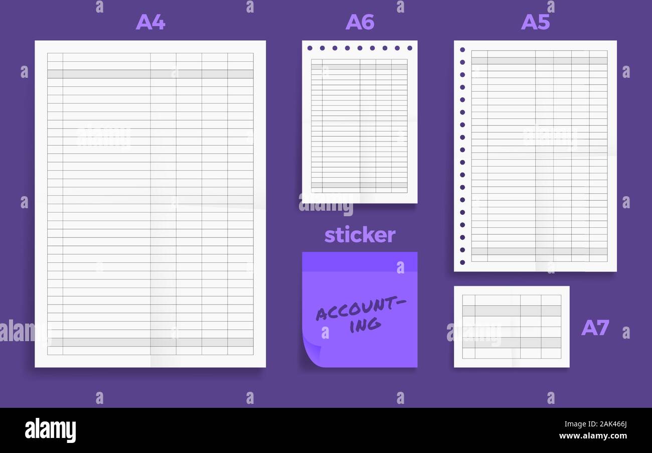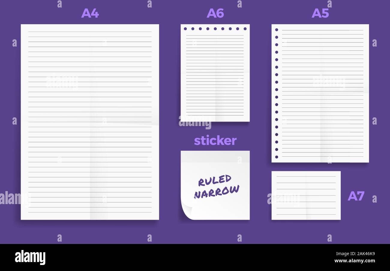 Conjunto De Cuatro Arrugado Standart En Blanco Una Serie De Hojas De Contabilidad De Papel De Formato A5 A6 Y Con Adhesivo De Tamano De Nota Imagen Vector De Stock