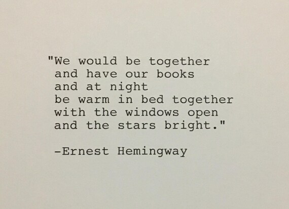 Ernest Hemingway Letterpress Quote We Would Be Together Romance Print Hand Typed Art Love Quote Star Print Romance Quotes Hemingway Quotes Literary Quotes
