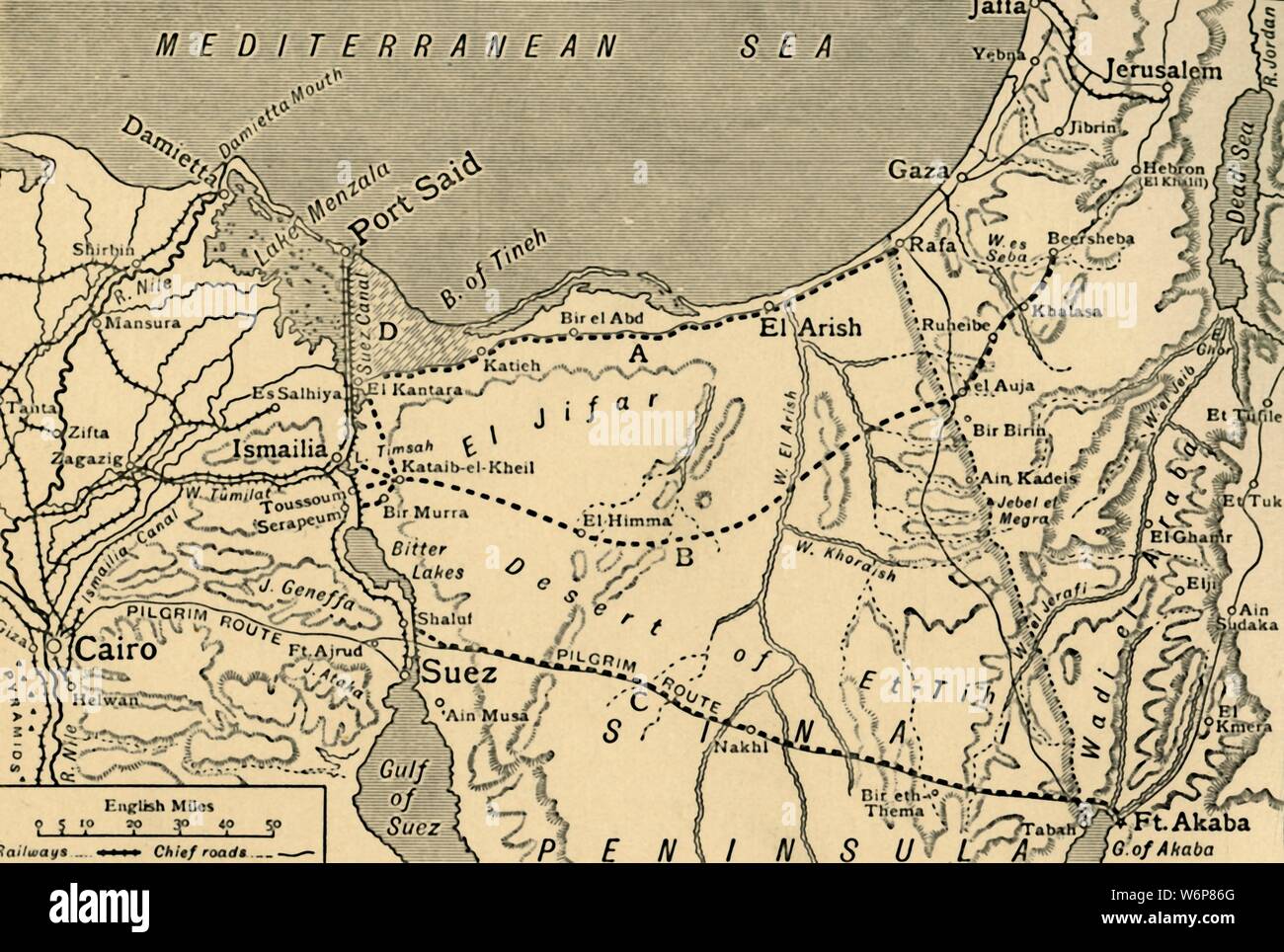 Mapa De El Ataque Turco En El Canal De Suez Egipto La Primera Guerra Mundial 1915