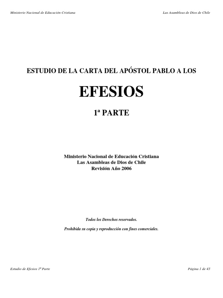 2 Tesalonicenses 1 Tim. En Efesios 2:19 y , Pablo resume así el rol fundacional único de los apóstoles:. Efesios 6 Realmente debemos incluir el capítulo 5 con éste ya que el capítulo 6 es una continuación.
