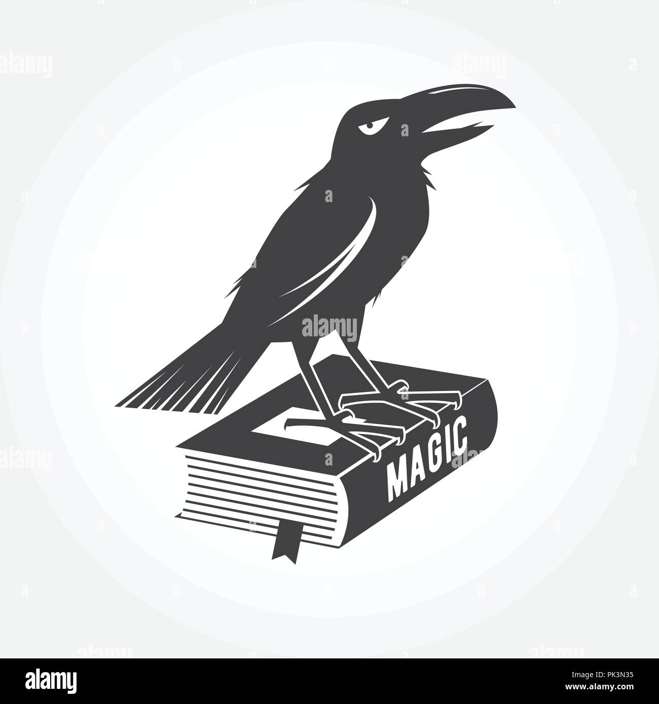 Halloween Vintage Insignia Emblema O Etiqueta Ilustracion Vectorial Para Imprimir En La Camiseta Tee Tarjeta De Invitacion La Plantilla Halloween Crow Y Magia Del Libro Imagen Vector De Stock Alamy