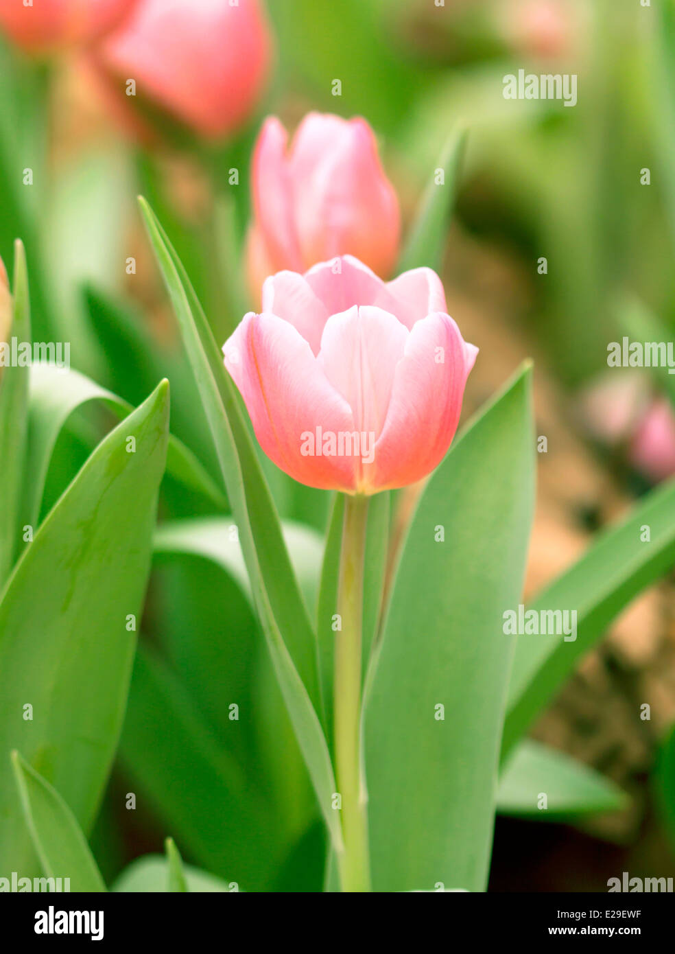 Tulip Flor Hermosa Rosa Con Un Bokeh De Fondo Fotografia De Stock Alamy