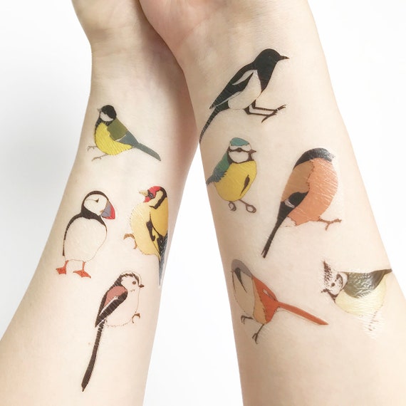Pajaro Tatuajes Temporales 9 Aves Realista Ilustrado Tatuaje Etsy