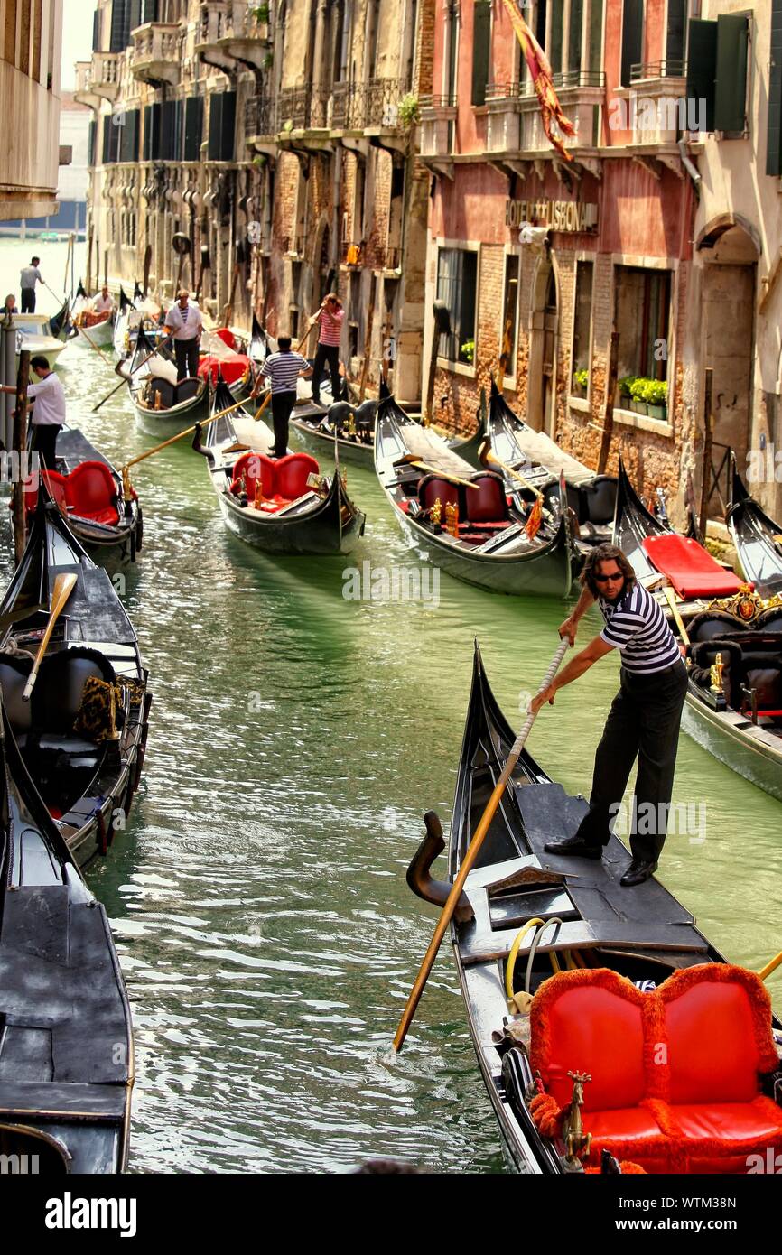 Venecia Italia Mayo De 17 Trafico Apretado De Gondolas En Venecia Coches En El Asfalto Una Gran Cantidad De Gondolas En Un L Imagen Editorial Imagen De Gran Venecia