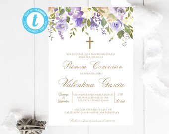 Invitacion Comunion Floral This Is Kool Invitaciones Comunion Invitaciones Invitaciones Comunion Nino
