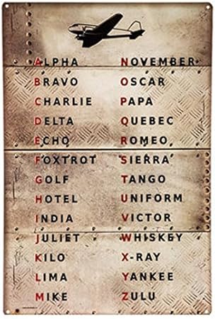 Amazon Com Pilot Code Cartel De Metal Para Aviacion Alfabeto Fonetico Alfabeto Alfa Bravo Charlie Home Kitchen