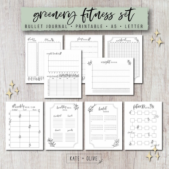 Bullet Journal Fitness Printable Planner Set Insert Etsy