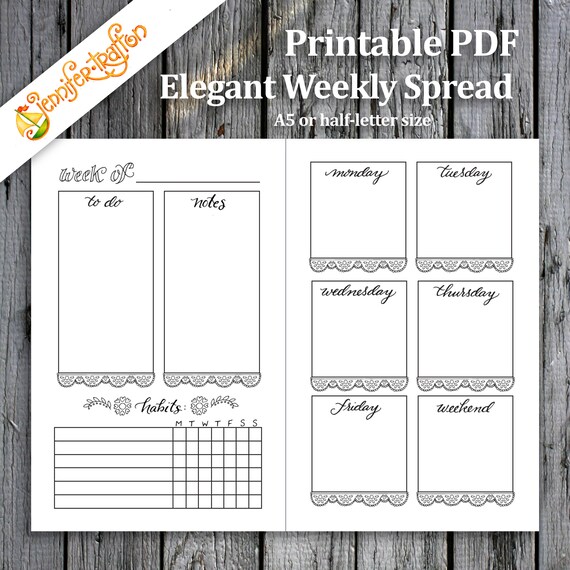 Elegant Weekly Bullet Journal Spread Instant Download Etsy