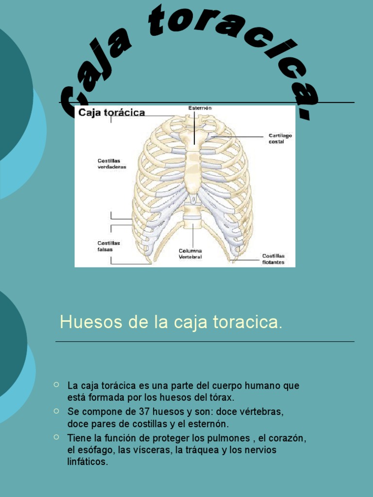 Huesos del tórax son los que componen la caja torácica y donde están contenidos un grupo de órganos vitales tales como el corazón, los pulmones, parte de la tráquea y del esófago, así como arterias, por ejemplo, la arteria aorta y venas como, la vena cava. Caja Torácica Thoracic Box Caja Torácica en 3D. About this Worksheet This is a free printable worksheet in PDF format and holds a printable version of the quiz Huesos caja torácicaBy printing out this quiz and taking it with pen and paper creates for a good variation to only playing it online.