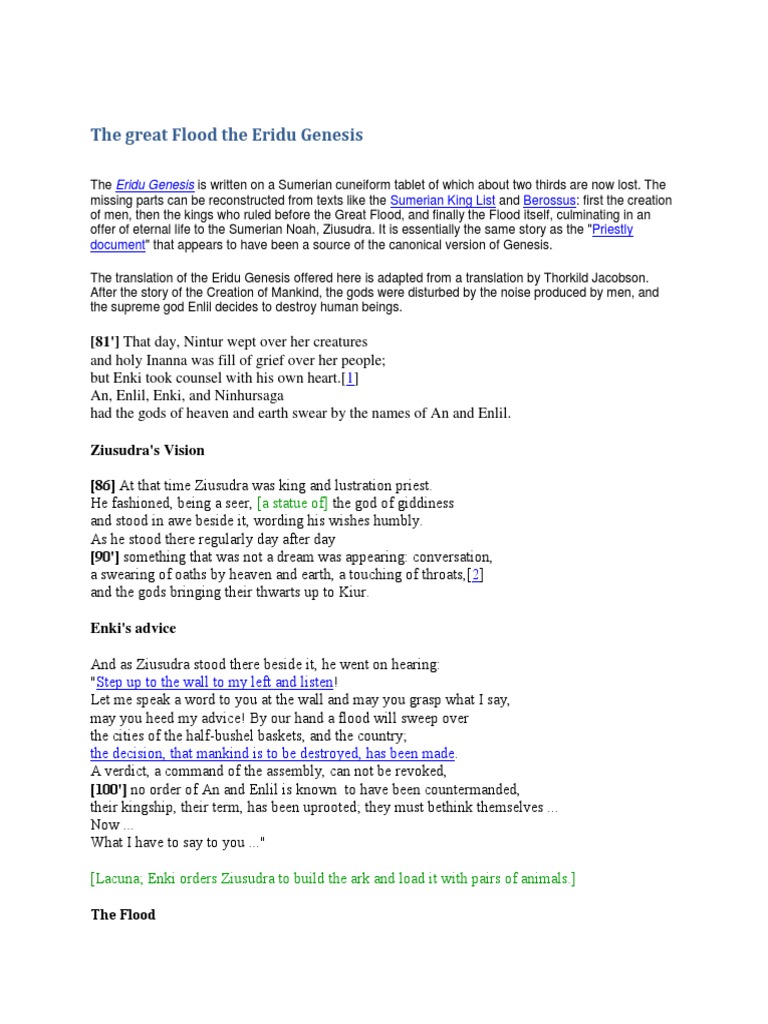 The Great Flood The Eridu Genesis Docx Mesopotamian Mythology Mythology