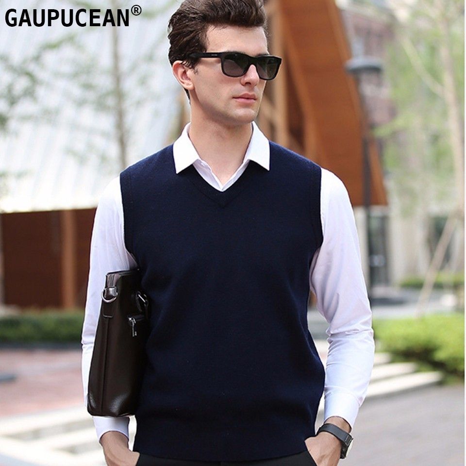 Compre 100 Lana Pura Hombres Sin Mangas Sueter Tejido Azul Marino Gren Rojo Prendas De Punto Sueter Masculino Con Cuello En V Casual Hombre De Punto Chaleco De Lana A 27 44