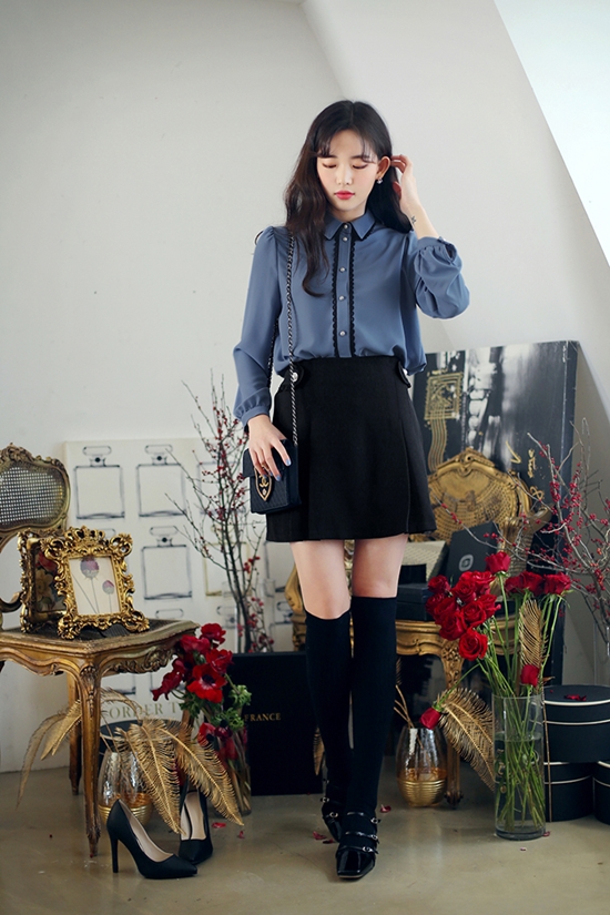 Korean Fashion Casual Street Blue Pale Shirt Black Skirt Korean Fashion Casual Fashion Korean Fashion