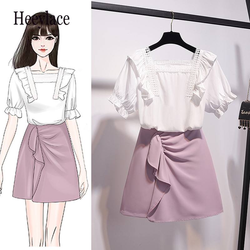 Women Sexy White Blouse Black Skirt Clothing Set Chiffon Slash Neck Ruffles Top Korea Fashion Suit Skirts Two Piece Outfit S 5xl Outfit Fashion Suit Skirtset Fashion Aliexpress