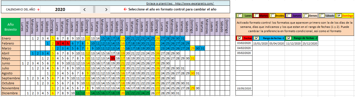 Calendario Que Muestra Los Dias Seleccionados Con Distinto Formato Excel Gratis