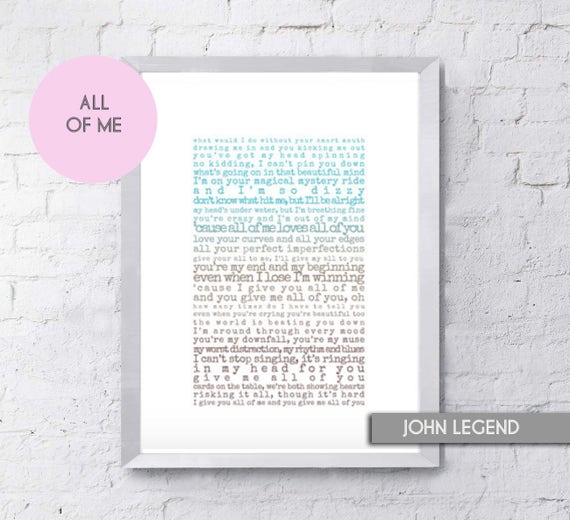 All Of Me Lyrics John Legend Gift For Music Lover Custom Etsy