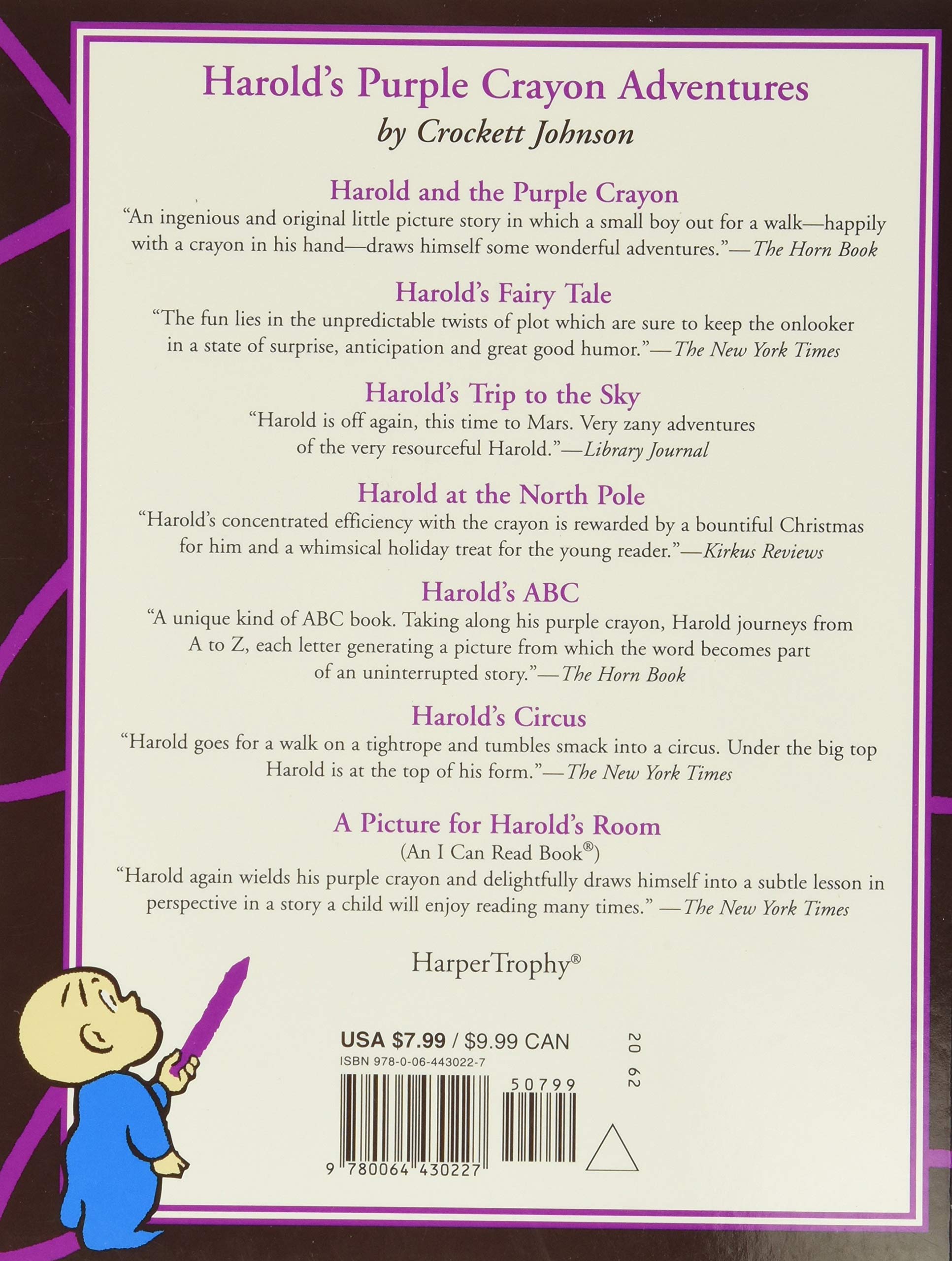 Harold and the Purple Crayon is a 1955 children's book by Crockett Johnson This is Johnson's most popular book It led to a series of other books, and inspired many adaptations Plot The protagonist, Harold, is a curious fouryearold boy who, with his purple crayon, has the. Harold and the Purple Crayon Harold’s creativity and imagination know no bounds in this timeless classic Harold wanted to go on a walk but didn’t have a path to walk on or a moon to light his way With his purple crayon in hand, he drew himself a path and a moon that followed him And so began his journey through his own imagination. Harper, 1955 Harold and the Purple Crayon (1955) "One evening, after thinking it over for some time, Harold decided to go for a walk in the moonlight" So begins the first of Johnson's books about Harold and his purple crayon, and then off he goes, using the crayon to draw a moon and a path to walk onLeaving the path, he draws himself into a forest, ocean, and balloon, exploring until he's.