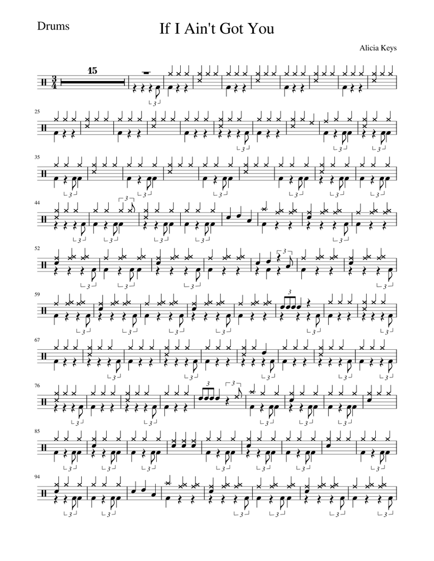 If I Ain T Got You Alicia Keys Drum Sheet Music Sheet Music For Drum Group Solo Musescore Com