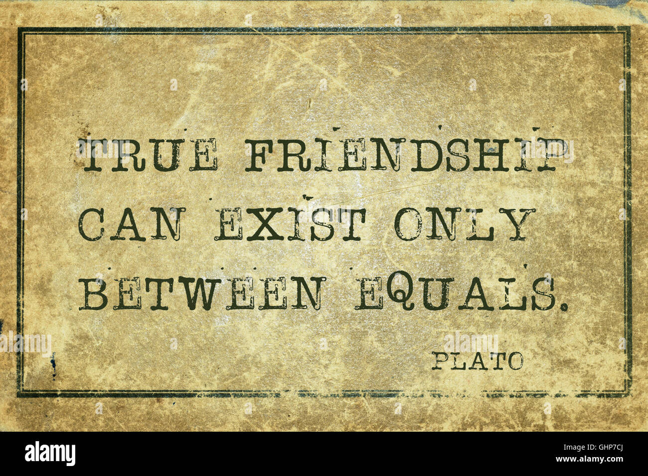 La Verdadera Amistad Solo Puede Existir Entre Iguales Antiguo Filosofo Griego Platon Cita Impreso En Carton Vintage Grunge Fotografia De Stock Alamy