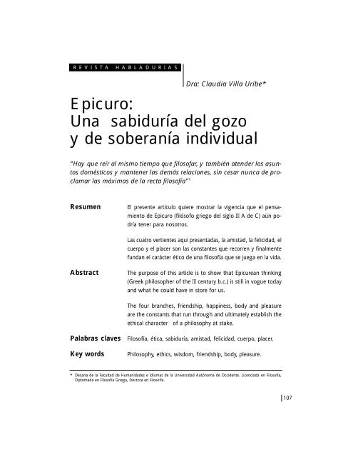 Epicuro Una Sabiduraa Del Gozo Y De Soberanaa Individual
