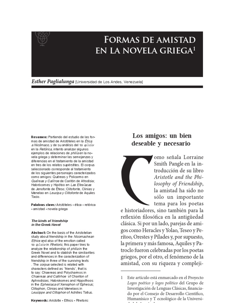 Formas De Amistad En La Novela Griega Poetica Aristoteles Aristoteles