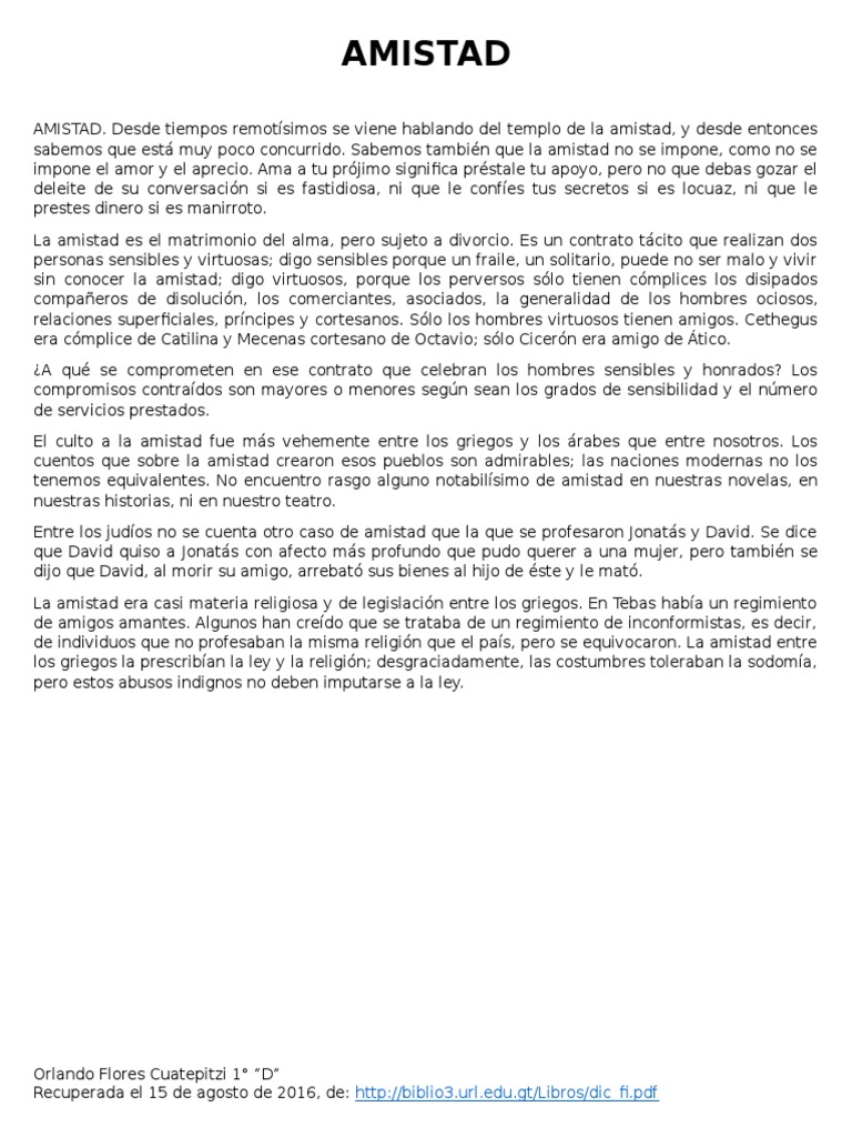 Aquí tienes algunas ideas. Amistad en resguardo A lo largo de la vida las personas experimentamos diversas circunstancias que pueden poner a prueba nuestra amistad Sin embargo, si la amistad es verdadera y comprometida podrá superar cualquier malentendido o situación. Definición de amistad en el Diccionario de español en línea Significado de amistad diccionario traducir amistad significado amistad traducción de amistad Sinónimos de amistad, antónimos de amistad Información sobre amistad en el Diccionario y Enciclopedia En Línea Gratuito 1 s f Sentimiento de afecto y confianza mutua entre personas les une una profunda amistad.