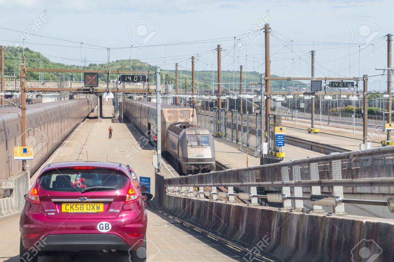 Coche En Tren Del Tunel Del Canal De La Mancha De Calais A Folkestone Foto De Archivo Imagen De Mancha Coche