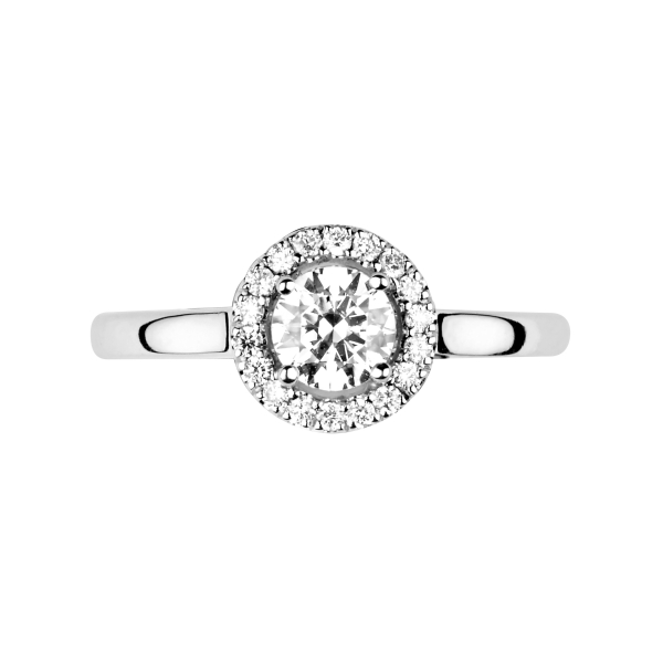 Bague De Fiancailles Coussin Avec Halo De Diamants Et Pierre Ronde Beldiamond