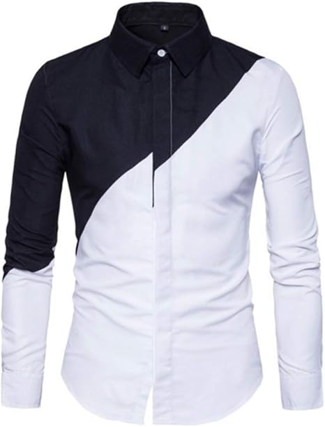 Famlyjk Camisa De Vestir Para Hombre Costura En Blanco Y Negro Camisa De Manga Larga Delgada A Juego Con Colores Casuales Hombre B S Amazon Es Deportes Y Aire Libre