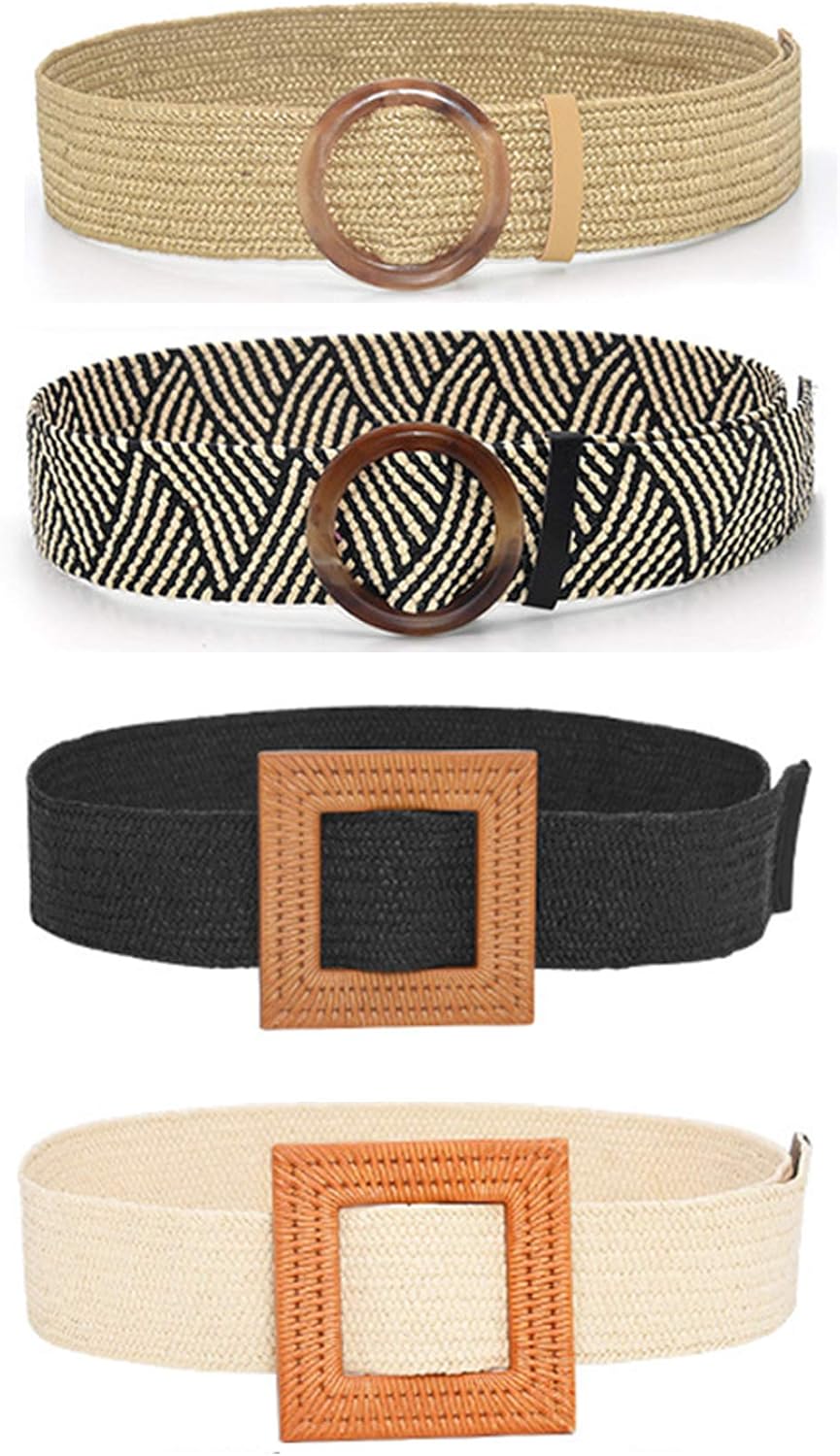 Mujer Jfan 4 Piezas Cinturon Tejido Para Mujer Ropa Cinturon Elastico Con Hebilla De Madera Cinturon De Vestir Casual A Juego Vestido Ropa Grupobrtelecom Com Br