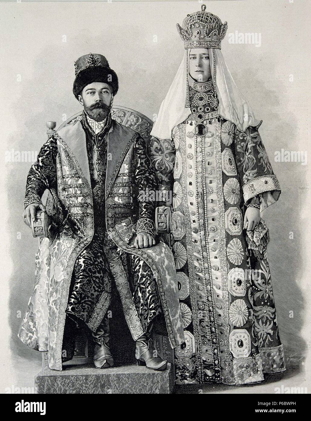 Nicolas Ii De Zar Rusia 1868 1918 El Zar Y Su Esposa Con El Traje Tipico Del Pais La Gravure De L Illustration Photo Stock Alamy