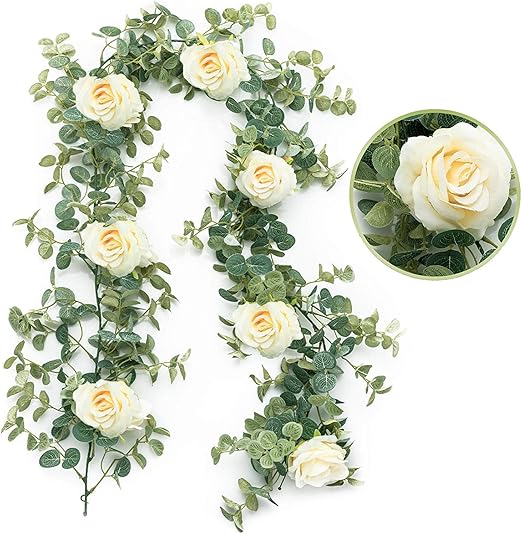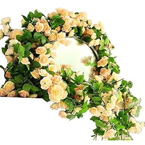 Plantas Y Flores Artificiales 2 Piezas Guirnalda De Rosas Artificiales Flores Colgantes Con Hojas Verdes Planta Colgante Planta Artificial Colgante Flor Artificial Decoracion Para Boda Fiesta Champagne Blanco Hogar Y Cocina Ak Oz Com