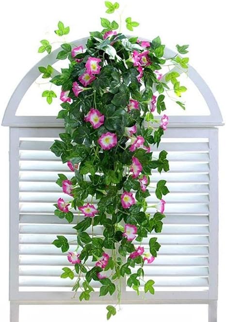 Amazon Com Flores Artificiales Colgantes De Flores De La Manana De Gloria Verde Decoracion Para Colgar En La Pared Del Hogar Jardin Cesta Colgante Decoracion 1 Pieza Home Kitchen
