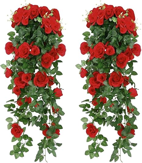 Blanco Fujie 2 Piezas Guirnalda De Rosas Artificiales Flores Colgantes Con Hojas Verdes Planta Colgante Planta Artificial Colgante Flor Artificial Decoracion Para Boda Fiesta Creeo Com Br