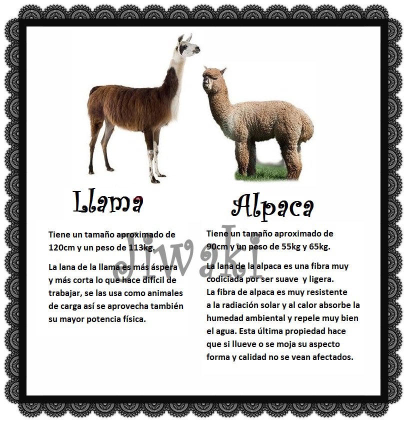 Y sus primos También incluimos una guía muy útil acerca de las fibras para que estés bien enterado al momento de comprar productos a base de alpaca Consejo de viaje La mejor manera de explorar Perú y ver todas las gemas escondidas del país es con Peru Hop. The yarn is perceived as being rougher and less desirable than alpaca yarn, although betterquality llama fiber can be comparable to alpaca Typical llama fiber is comparable to sheep’s wool in terms of weight and texture Annual global output for llama yarn is about 600 tons. Diferencias entre llama, alpaca y vicuña Si estás leyendo este post y no perteneces a alguno de los países andinos de Latinoamérica (Perú, Chile, Argentina, Boliva, Ecuador, Venezuela o Colombia), seguramente no hayas escuchado nunca hablar de la alpaca y la vicuña , pese a ser ambas muy parecidas a la llama y pertenecer todas a la.