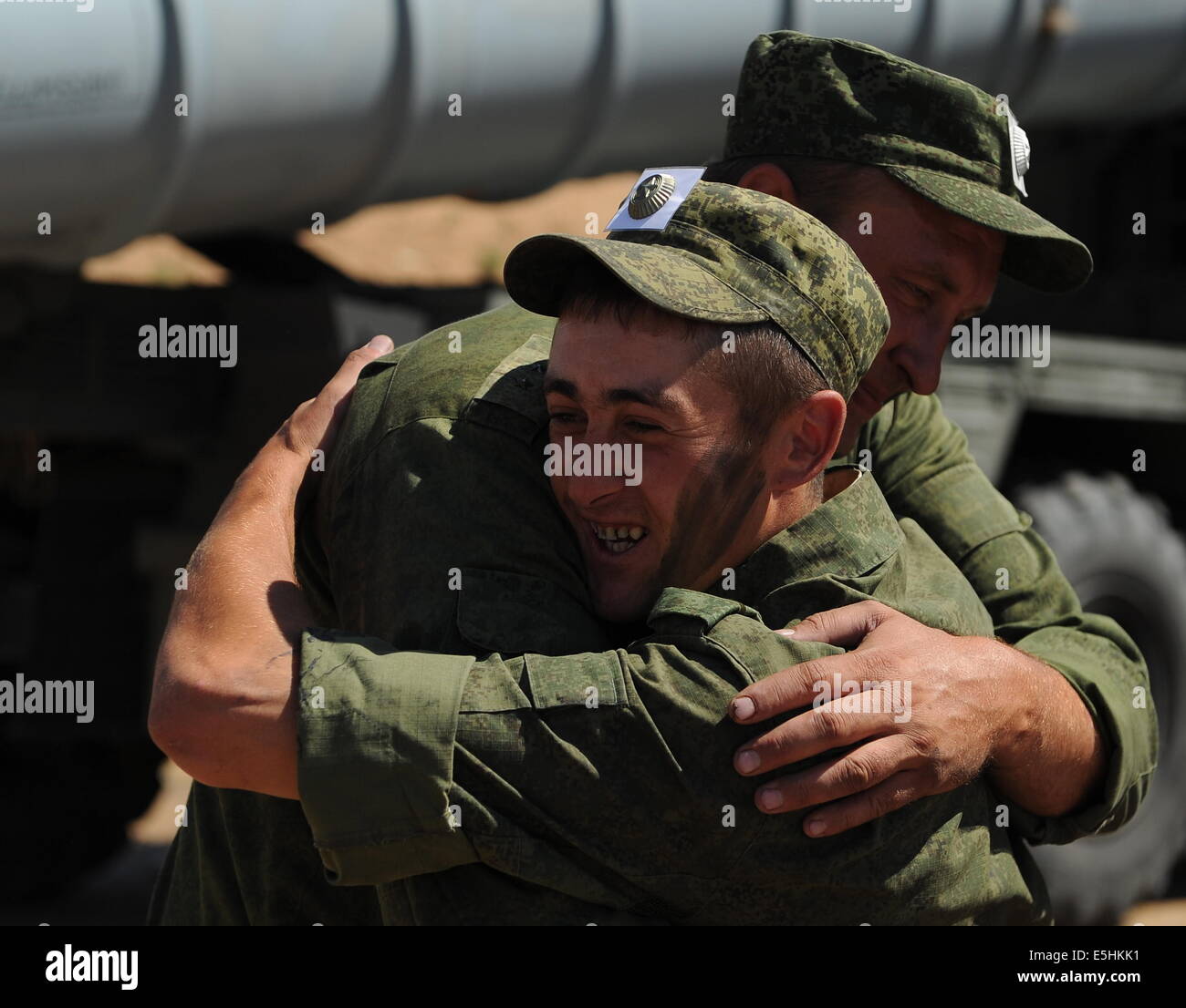 Region De Astracan Rusia El 31 De Julio De 14 Soldados Del Ejercito Ruso Se Someten A Un Rito De Iniciacion Durante Su Primer Ejercicio Militar En Ashuluk Campo De Tiro El