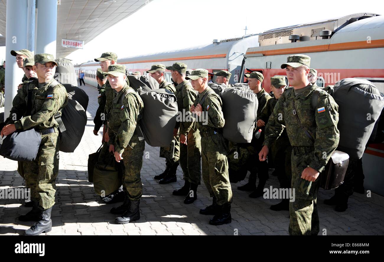 Zhurihe China 16 Aug 14 Los Soldados Rusos Llegan A La Estacion De Tren De Zhurihe Base De Entrenamiento En El Norte De China La Region Autonoma De Mongolia Interior Agosto 16
