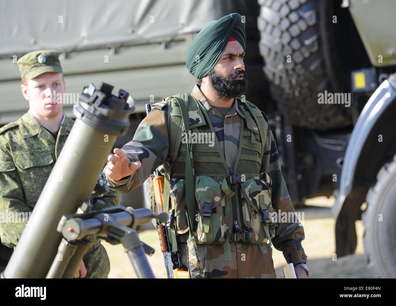 Volgogrado Rusia 27 Sep 14 Ruso Y El Ejercito Indio Militares Tomen Parte En Los Ejercicios Tacticos Russian Indian 14 Indra En El Poligono De Tiro Prudboy Volgogrado Region Del Sur De Rusia